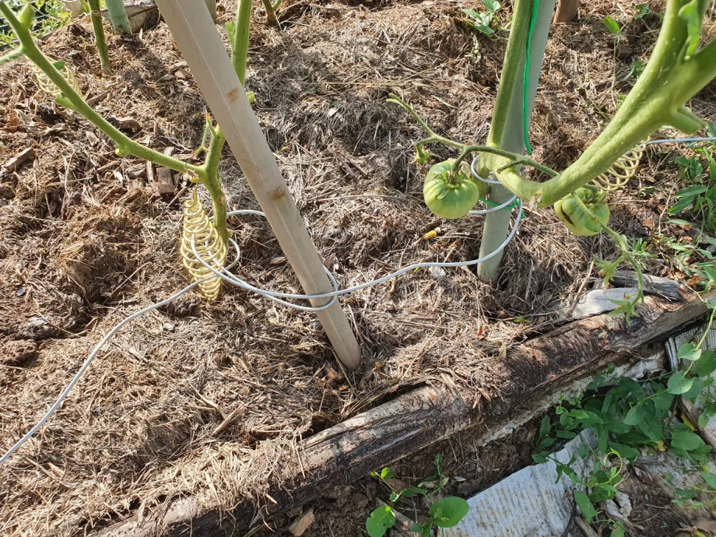 Oggi parte un nuovo esperimento, proviamo a vedere se esiste una collaborazione energetica tra piante dello stesso tipo, in questo caso i pomodori utilizzando un filo metallico.