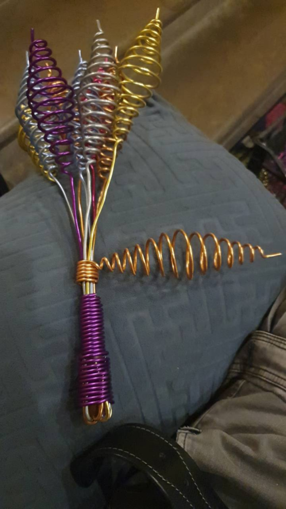 - Avvolgere un filo alluminio per un paio di giri intorno agli steli e poi piegarli con la punta verso l’alto, continuare ad avvolgere il filo comprendo l’intero tubo di rame.